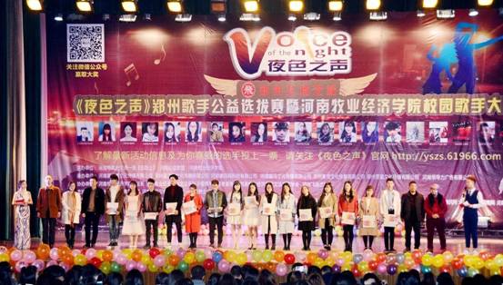 12月1日晚上,由河南星光秀文化傳媒有限公司《夜色之聲》鄭州歌手公益選拔賽暨河南牧業(yè)經(jīng)濟學(xué)院(英才校區)歌圓滿(mǎn)結束,最終脫穎而出六位選手、十五位優(yōu)秀歌手及兩位最佳人氣歌手。